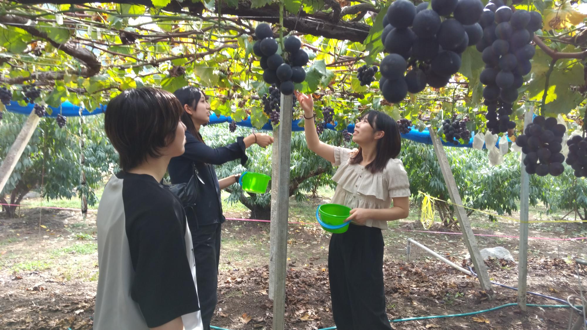 さらに、マルス山梨ワイナリーでは製造工程を見学し、浅間園では果樹狩りを体験。スタッフの方々との交流を通して、地域の人々が観光にかける思いや工夫を学ぶことができました。