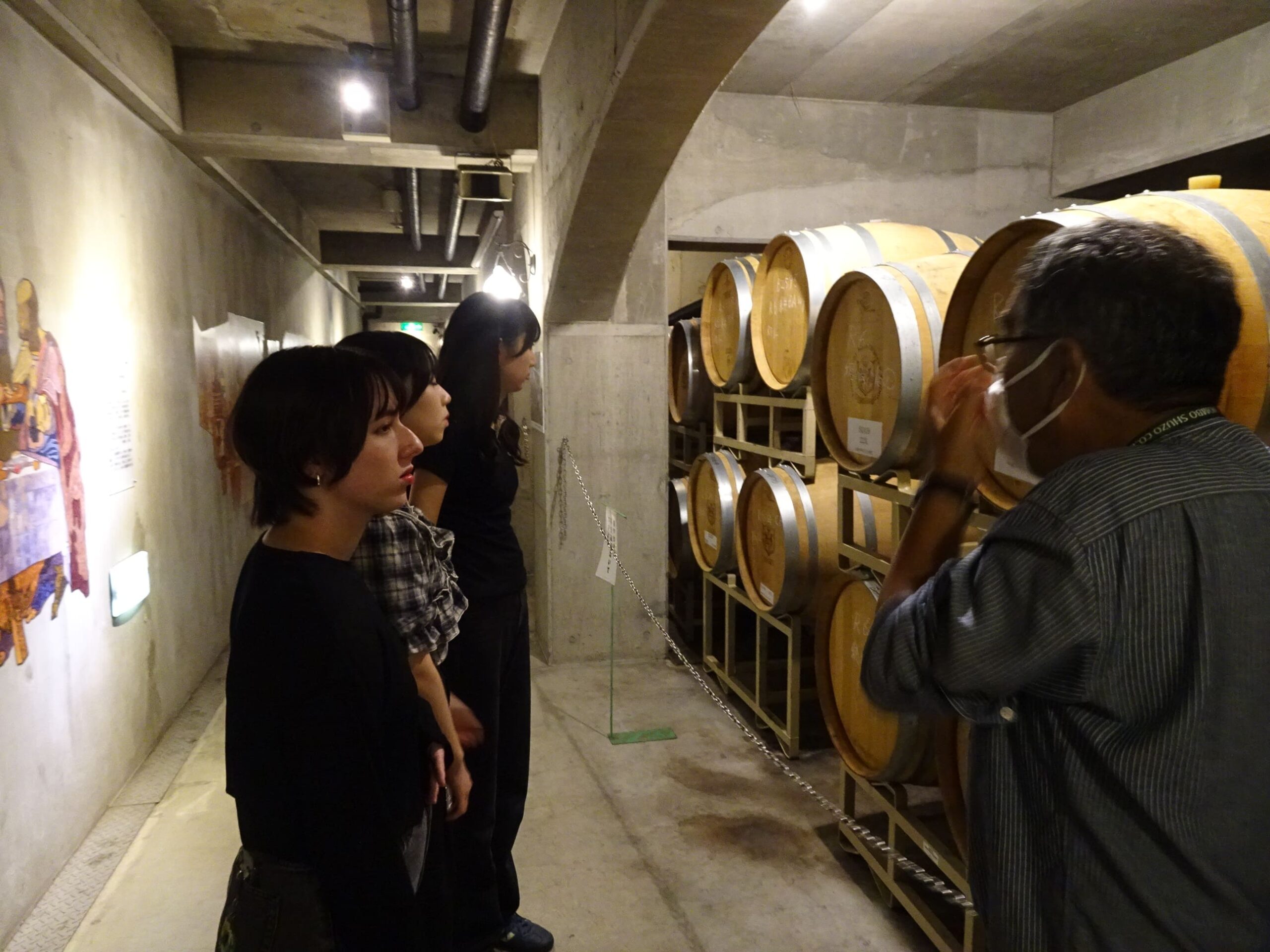 「マルス山梨ワイナリー」地下のワイン貯蔵庫